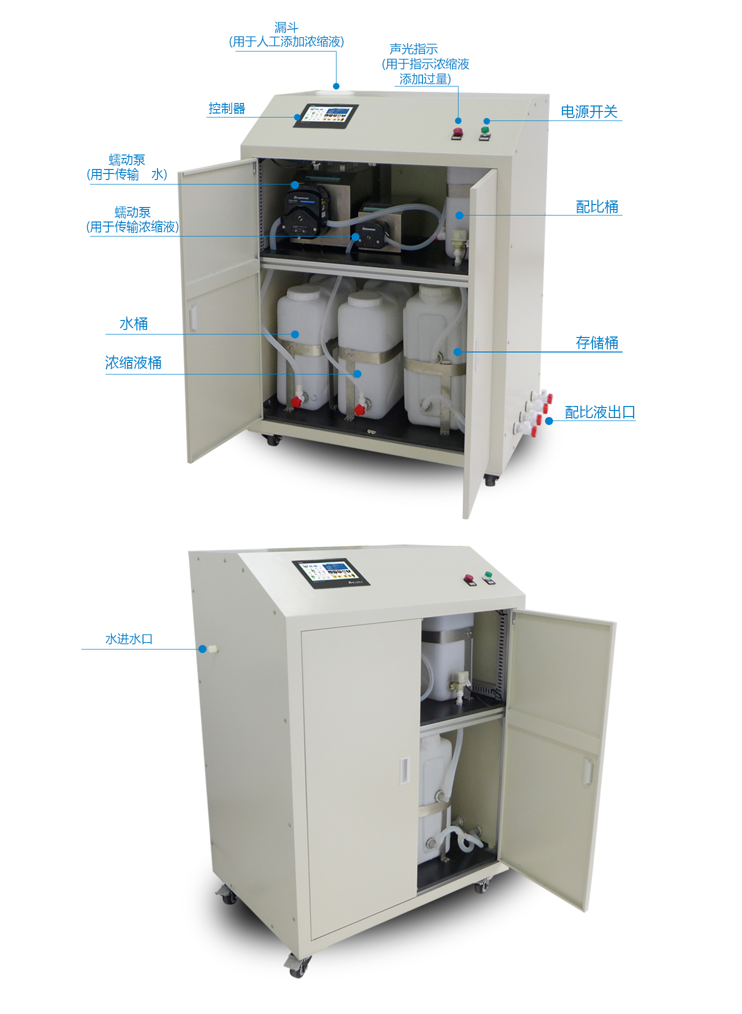 產(chǎn)品特點(diǎn): 智能控制系統(tǒng),人機(jī)界面友好,彩色觸摸屏操作,動(dòng)畫(huà)顯示工作狀態(tài),配液工作流程自動(dòng)執(zhí)