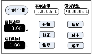 5、如果要求精度較高,可以在微調(diào)液量處點(diǎn)擊增加或減小按鈕,微調(diào)液量值,實(shí)現(xiàn)高精度傳輸或分裝。