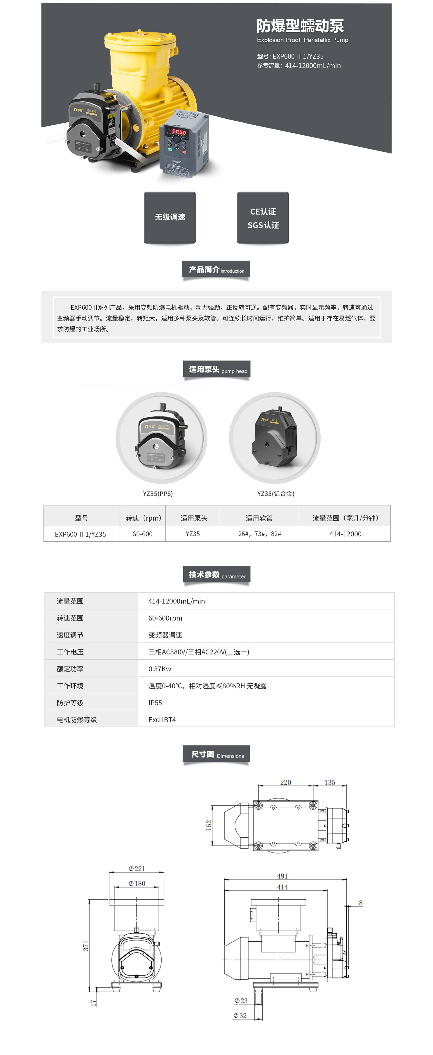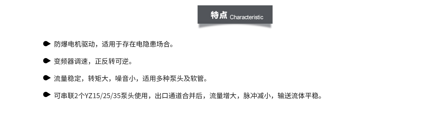 EXP600-II-1/YZ35防爆型蠕動(dòng)泵 采用防爆電機(jī)驅(qū)動(dòng) 動(dòng)力足 正反轉(zhuǎn)可逆 轉(zhuǎn)速可手動(dòng)調(diào)節(jié)流量穩(wěn)定 轉(zhuǎn)矩大 噪音小 適用多種泵頭及軟管 可連續(xù)長(zhǎng)時(shí)間運(yùn)行