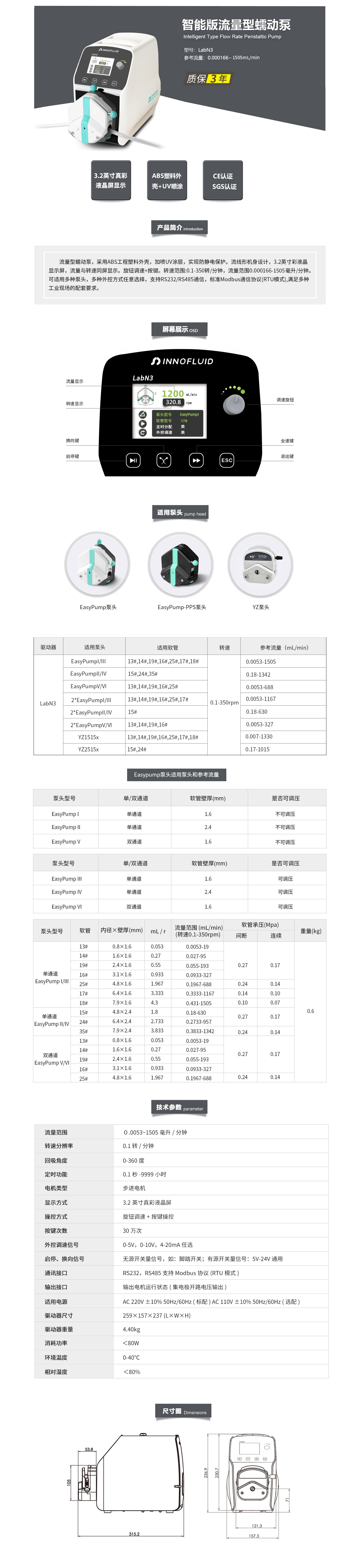LabN3靜音蠕動泵轉(zhuǎn)速范圍0.1-350轉(zhuǎn)/分鐘 LabN3靜音蠕動泵可適用多種泵頭 多種外控方式任意選擇 LabN3靜音蠕動泵流量范圍0.0053-1505mL/min